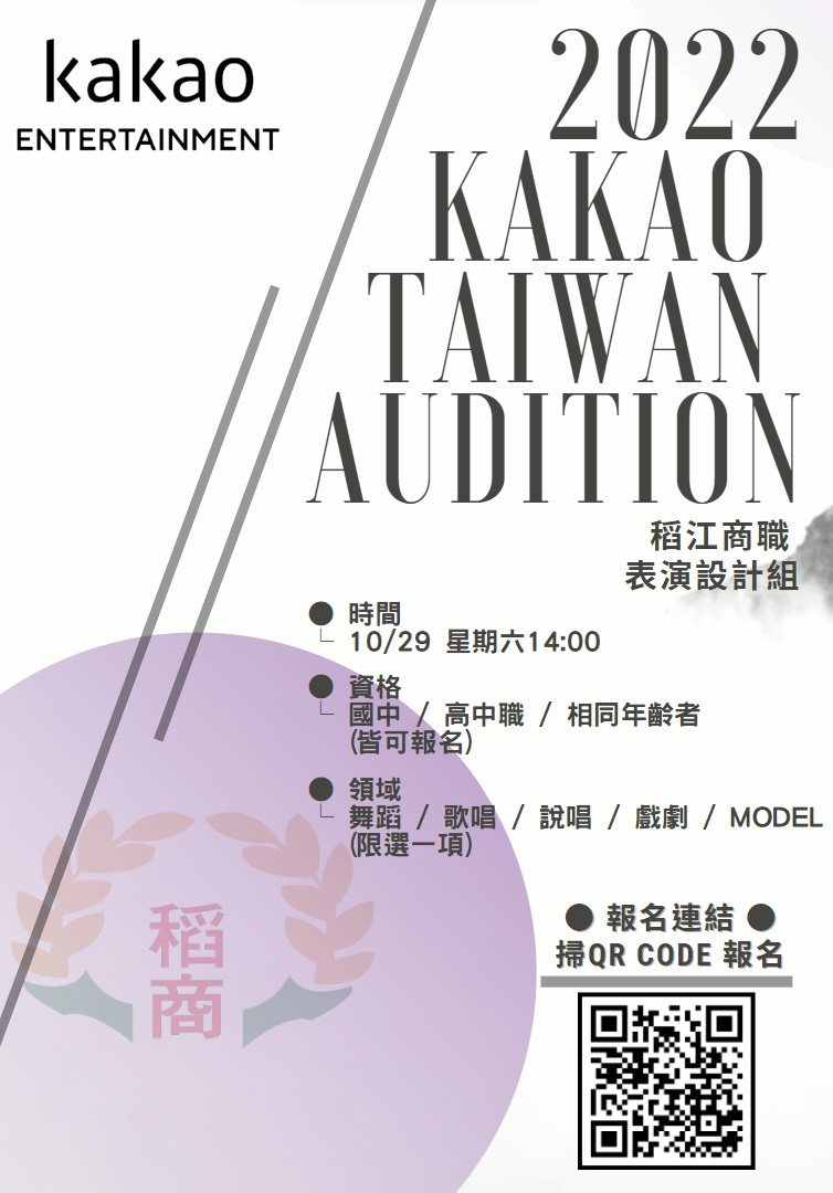 稻江高級商業職業學校廣告設計科10月29日(六)【稻江電競舞林爭霸戰及電競體驗營】暨表演設計組【2022Kakao Taiwan Audition選秀】