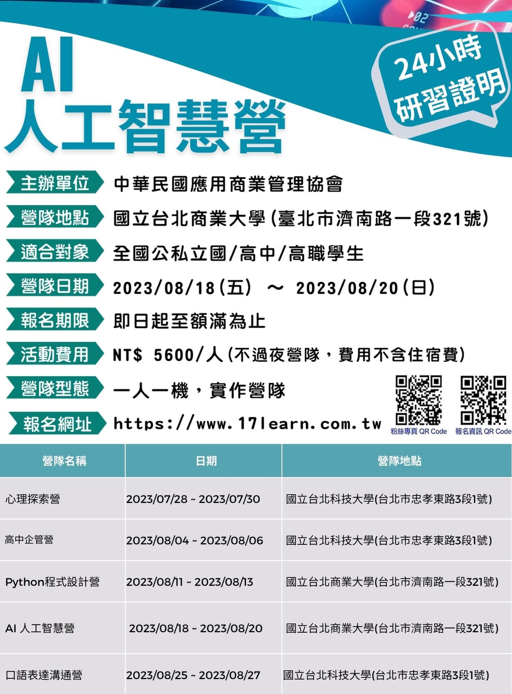 七、報名網址及營隊詳細說明:https://www.17learn.com.tw