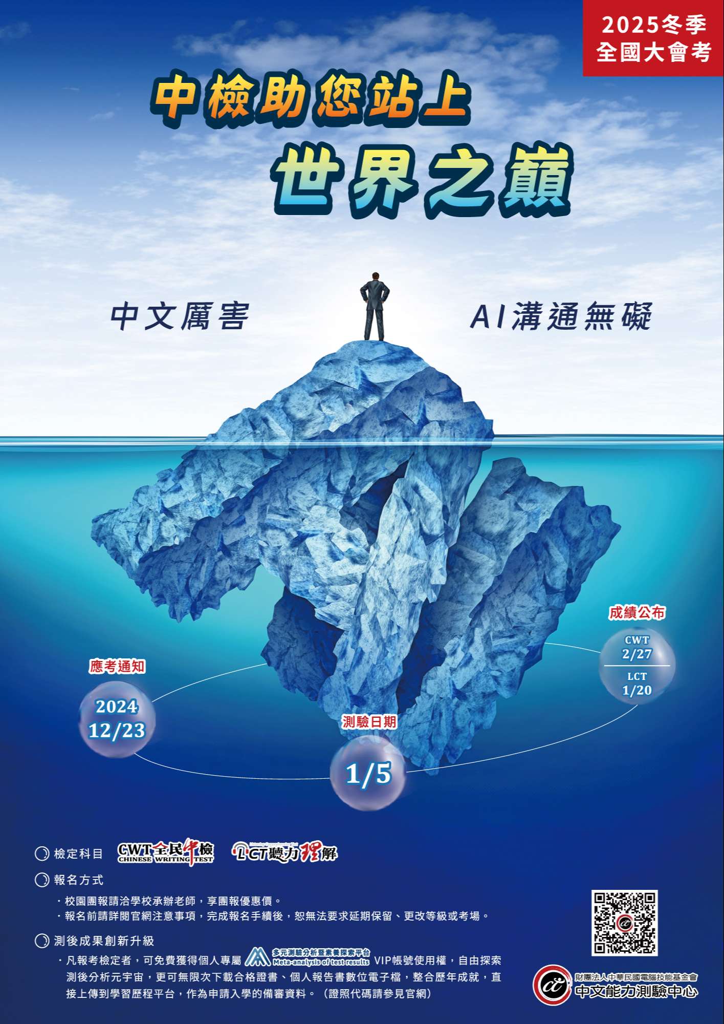 三、報名期自2024年9月10日起至12月4日截止,如貴校報名人數滿100人(含)以上,可向本中心申請在校施測優惠專案。