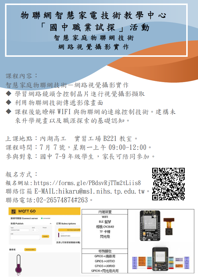 (一)課程名稱:智慧家庭物聯網技術-網路視覺攝影實作。