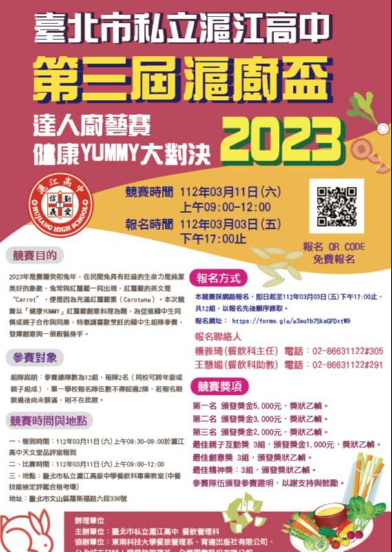 (一) 「滬廚盃」聯絡人:楊雅琦(餐飲科主任)電話:02-86631122#305;王慧媚(餐飲科助教)電話:02-86631122#291