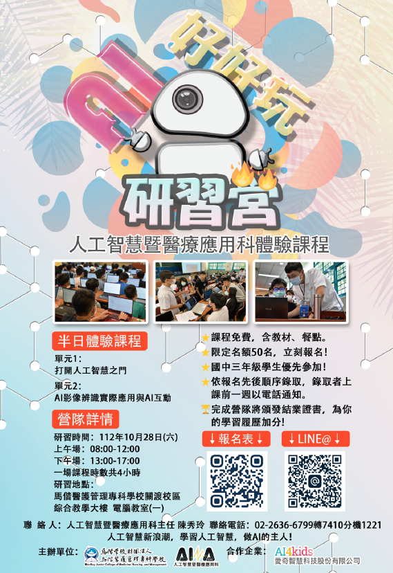 六、聯絡電話:2636-6799分機7410-1221,人工智慧暨醫療應用科蔡孟錡技佐。