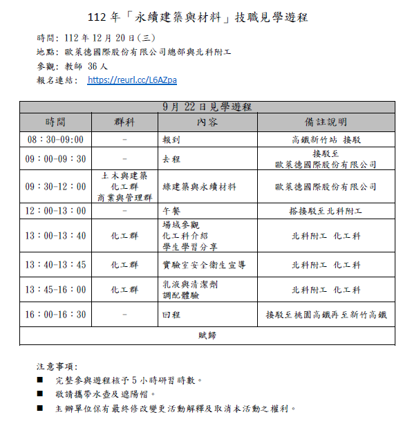 (五)遊程報名連結:https://reurl.cc/L6AZpa;其他活動細詳如附件。