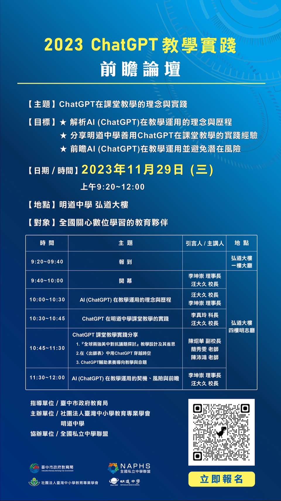 (二)分享明道中學善用ChatGPT在課堂教學的實踐經驗。