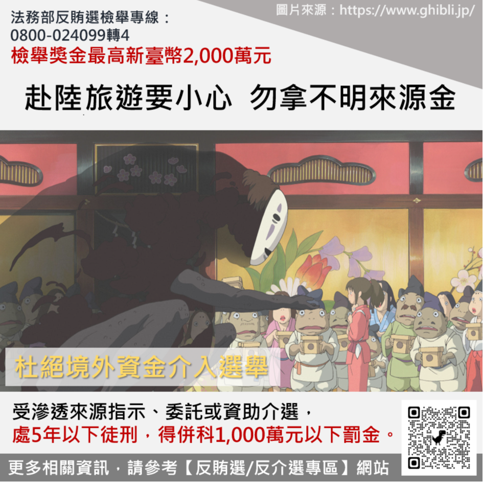 二、鑒於境外勢力介選情形屢為輿論焦點並見諸媒體報導,為強化機關同仁及民眾反介選之法遵意識,請維護選舉公平及守護國家安全。