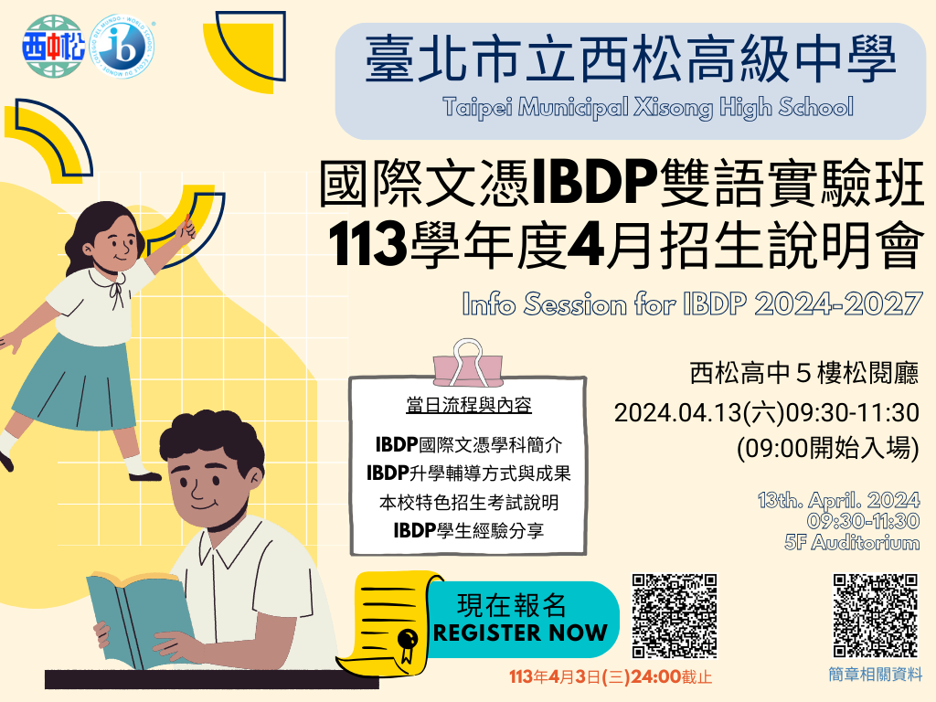 (一)113學年度國際文憑IBDP雙語實驗班招生說明會:113 年