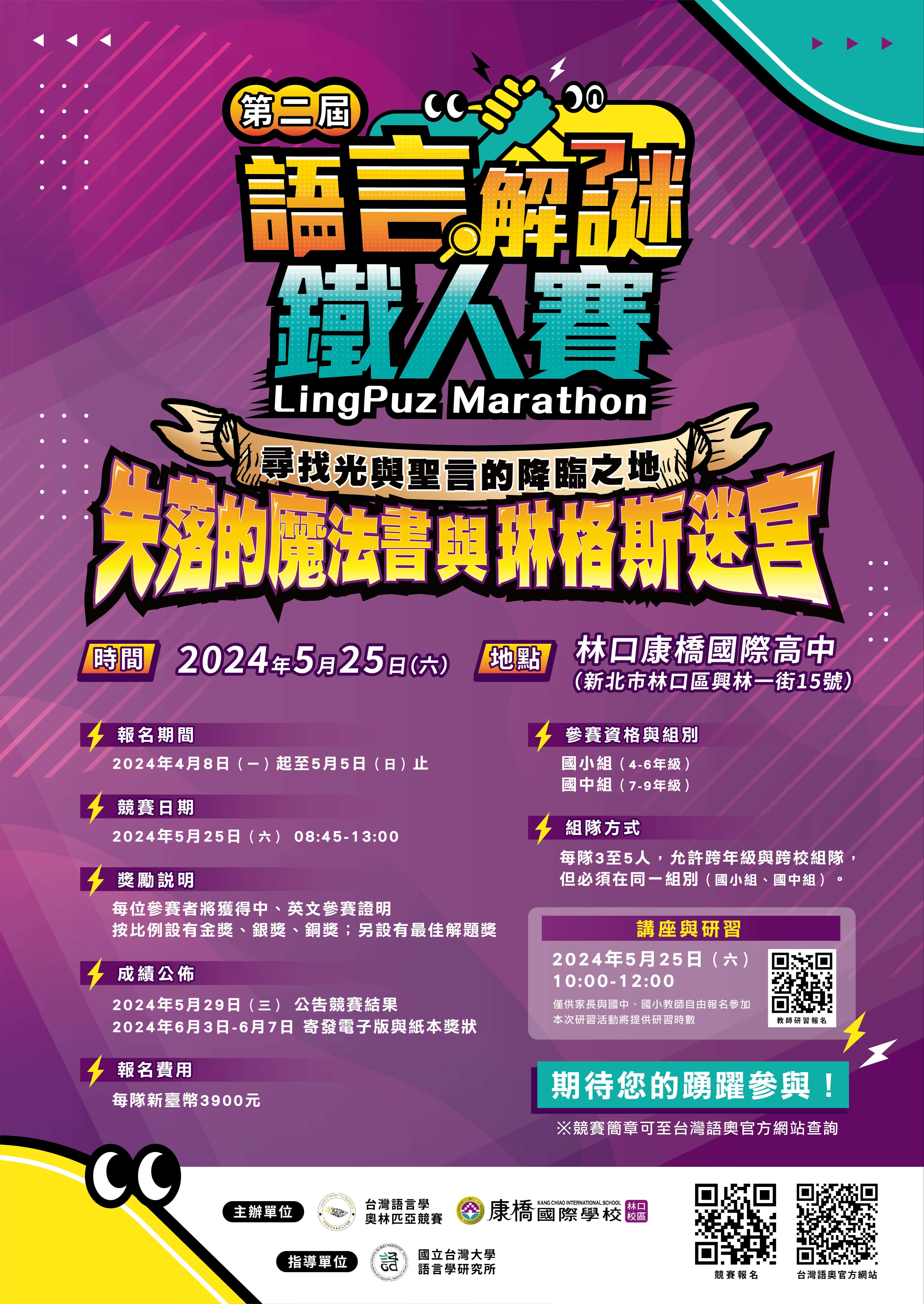 一、國立臺灣大學語言學研究所將於113年5月25日,假林口康橋