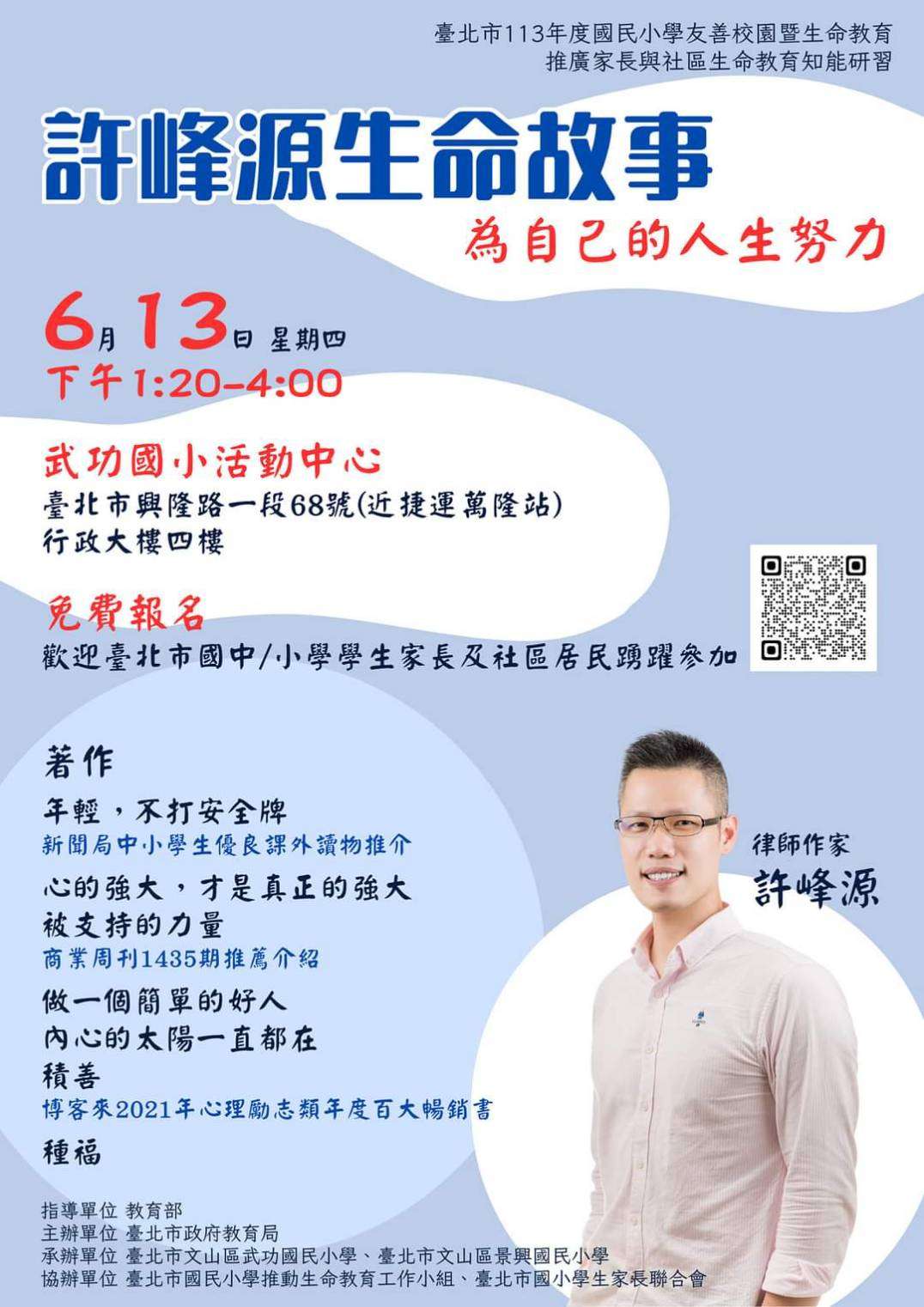 二、報名方式:即日起至6月3日(一)止,報名表單連結: https://forms.gle/xHepQ8aXWXPxQegz7