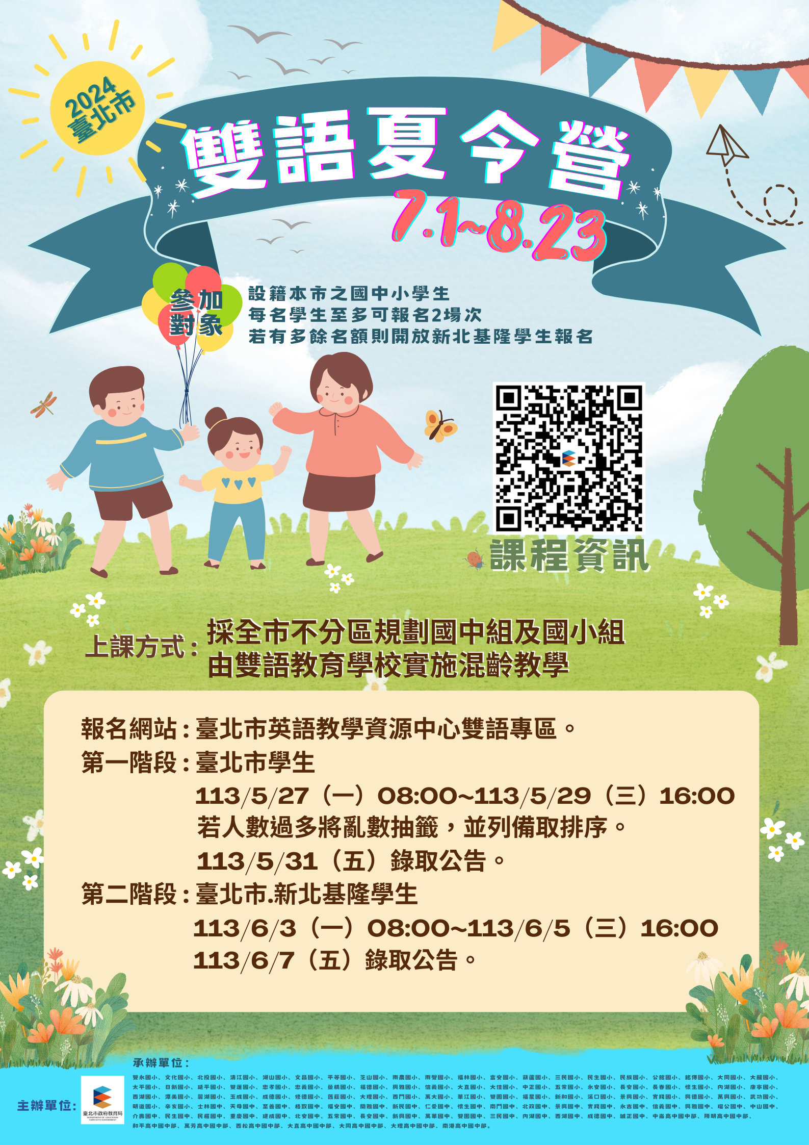5、於113年5月27日(星期一)上午8時起在臺北市英語教 學資源中心雙語專區(https://ecamp.tp.edu. tw /bilingual/index.php)開放網路線上報名。
