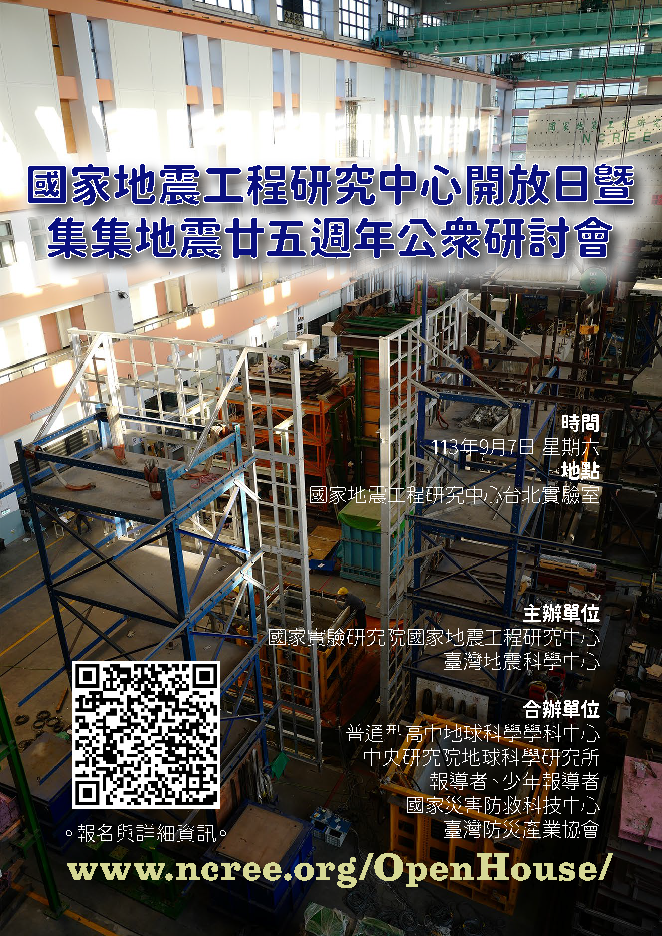 2、一般民眾:請至國家地震工程研究中心開放日官網(https://www.ncree.org/OpenHouse/)報名。