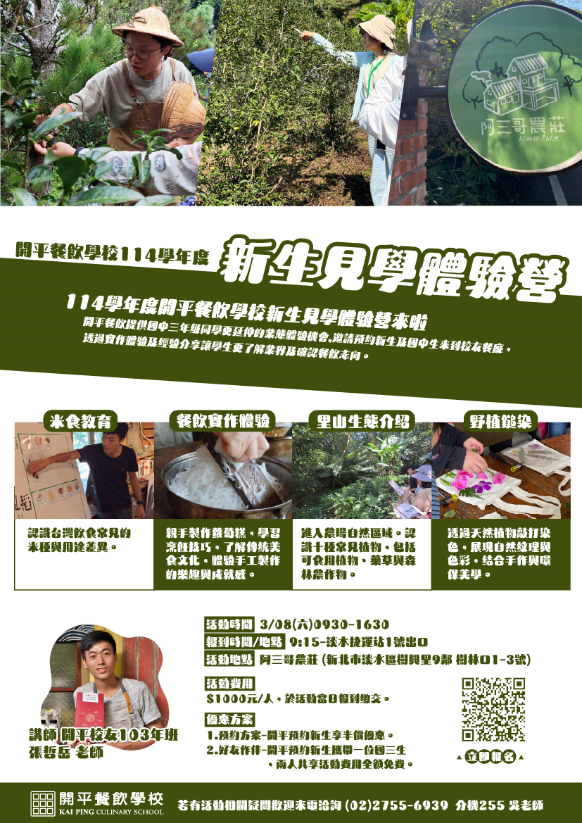 三、活動對象:全國國中生36位。(開平預約新生、國三生優先)