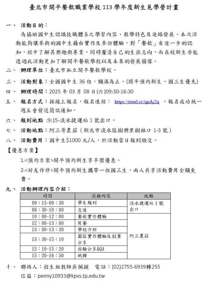 八、活動詳細內容請參閱實施計畫,有相關事宜,歡迎洽詢2755-6939轉255,吳老師。